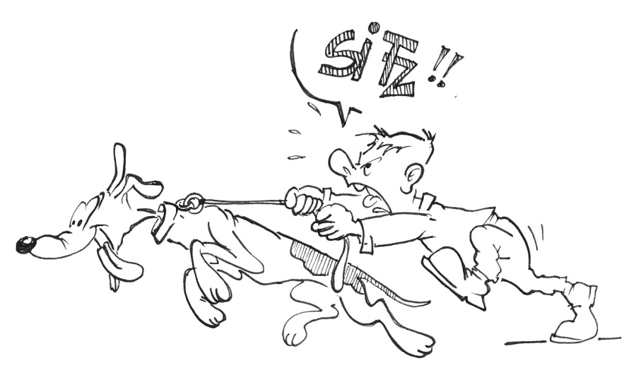 Der Hund lernt, eine gestellte Person (den sogenannten Helfer) zu verbellen, ihn zu beobachten und auf Kommando zu reagieren. Wenn er zupackt, dann nur auf Anweisung und er muss sofort lösen, sobald der Hundeführer das befiehlt.